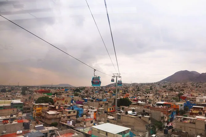 Vas a montar el famoso teleférico de CDMX sobre los barrios coloridos de Iztapalapa, probar tacos y dulces en un mercado lleno de vida, visitar un museo sobre tradiciones aztecas y terminar con pulque en un bar local. Esta excursión te mete de lleno en la vida real de CDMX, con risas, sabores y vistas que no olvidarás.