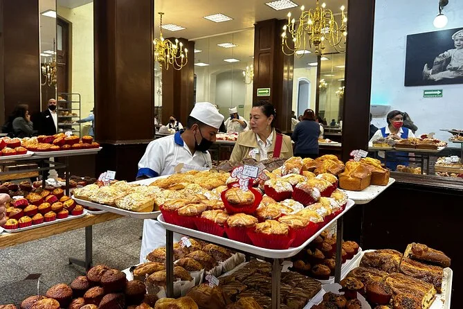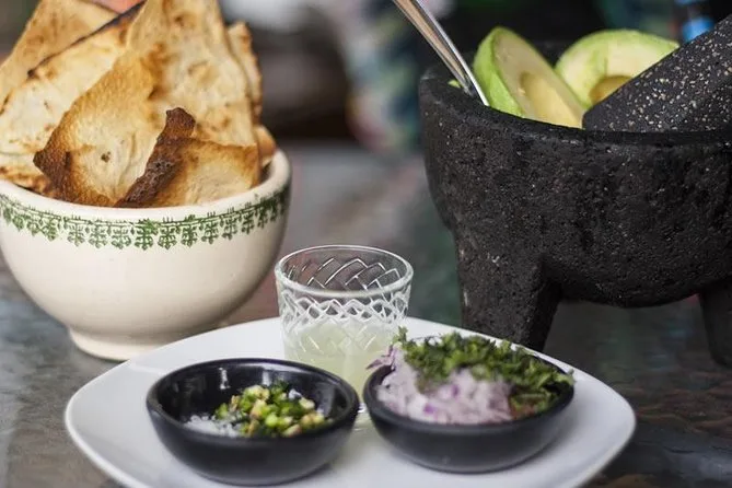 Tu día incluye siete degustaciones auténticas como tortillas crujientes hechas a mano con guacamole, tacos llenos de sabor (acompañados de cerveza local fría o agua fresca), dos dulces de panaderías reconocidas incluyendo bocados artesanales de chocolate mexicano, chilaquiles al estilo azteca o enchiladas de pollo bañadas en mole — todo guiado por un local amable que comparte historias en cada paso por el Centro Histórico de la Ciudad de México.