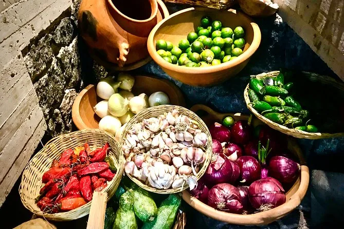 Probarás tortillas crujientes con guacamole, tacos, chilaquiles, enchiladas con mole, dulces de panadería, bocados artesanales de chocolate, cerveza local o agua fresca, y un platillo sorpresa.