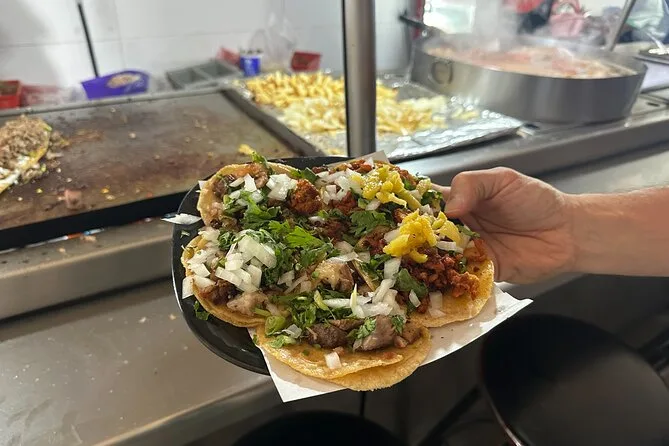 Recorre el Centro Histórico de CDMX con un guía local, probando tacos del tamaño de la mano, bocados de chocolate, chilaquiles y más por calles llenas de vida. Escucha las historias detrás de cada parada y siente el pulso de la ciudad mientras disfrutas siete platillos auténticos, terminando con ese calor único que sólo la verdadera comida mexicana (y su gente) puede dar.