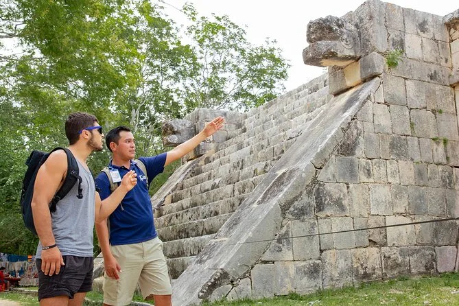 Al acercarnos a Chichen Itzá... la verdad, pensé que me sentiría como otro turista más en la multitud. Pero nuestro grupo pequeño se mantuvo unido mientras Javier señalaba detalles en El Castillo que nunca habría notado — como cómo tu voz hace eco si aplaudes en el lugar justo (todos lo probamos; funciona). El sol pegaba fuerte, pero había paraguas para prestar, lo que me salvó porque olvidé el bloqueador (otra vez). ¿Mi parte favorita? Cuando Javier explicó los grabados en las paredes del juego de pelota — tenía una mirada en los ojos como si realmente quisiera que entendiéramos lo que significaba para sus antepasados. Me puso la piel de gallina.
