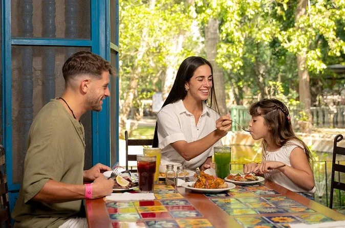 No esperaba tener hambre tan rápido después de recorrer Chichen Itzá, pero al llegar al Cenote Saamal ya estaba listo para comer. El buffet tenía platillos yucatecos deliciosos — llené mi plato con pollo en salsa de naranja y un arroz que tenía un sabor ahumado muy especial. También había fruta fresca, que se agradeció mucho después de caminar con tanto calor. Nadar en el cenote fue casi mágico; el agua está más fría de lo que imaginas y huele a tierra mojada, a piedra y hojas. Algunos niños locales se reían de nosotros, los turistas que gritábamos al saltar al agua. Mi toalla nunca se secó del todo después de eso.