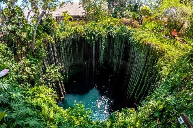 Después de recorrer las ruinas durante unas dos horas, nos dirigimos al Cenote Ik Kil. El aire cambió—más fresco, con un leve aroma a tierra. Fuimos de los primeros en llegar, así que el agua estaba tranquila y cristalina. Me metí los pies antes de lanzarme de lleno—se sentía como un lugar secreto. Cerca hay un pequeño puesto de snacks; tomé un coco fresco antes de irnos. Todo el día fue relajado, sin prisas. Si quieres agregar una parada o quedarte más tiempo, con gusto lo ajustan.