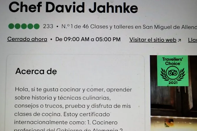 Tu día incluye todo el equipo e ingredientes que te proporcionará el chef en Ciudad de México; prepararás cuatro platillos elegidos junto a él (con opciones veganas o sin gluten si lo necesitas), comerás todo lo que cocinen en el lugar y recibirás mucha guía y anécdotas de un chef certificado internacionalmente durante esta clase privada de cocina mexicana.