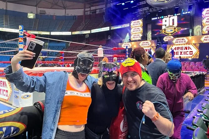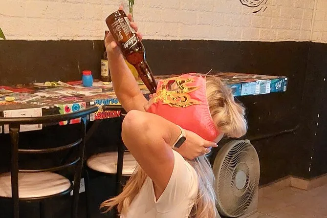 Tu noche incluye un shot de mezcal de bienvenida en un bar o mezcalería local, cena con tacos (incluyendo opciones vegetarianas o veganas), tu propia máscara de luchador para llevar de recuerdo, entradas para los combates en vivo en la Arena México con guía que te explica todo, y puntos seguros para tomar transporte de regreso.