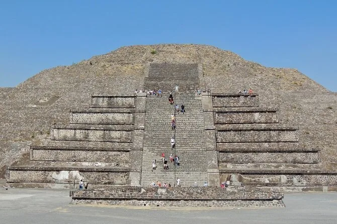 Tu día incluye traslado de ida y vuelta en minivan con aire acondicionado desde hoteles seleccionados en Ciudad de México, entrada al sitio arqueológico de Teotihuacan y a la Basílica de Guadalupe con guía local bilingüe en cada parada, cata de mezcal o tequila (y pulque), además de almuerzo si eliges esa opción antes de regresar juntos a la ciudad.