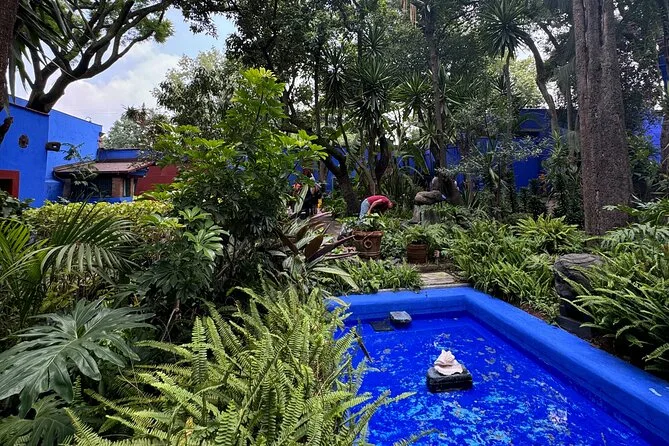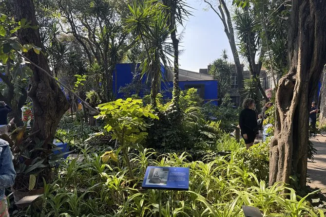 Terminamos quedándonos un rato en el jardín detrás de la Casa Azul porque nadie nos apuró para salir. El sol sobre las paredes azules, la bugambilia arriba, gente sentada en silencio o dibujando. No fue para nada lo que esperaba de un “tour al Museo Frida Kahlo”: mucho más cálido, desordenado y real. Me alegro de que tuviéramos tiempo para simplemente quedarnos ahí un rato.