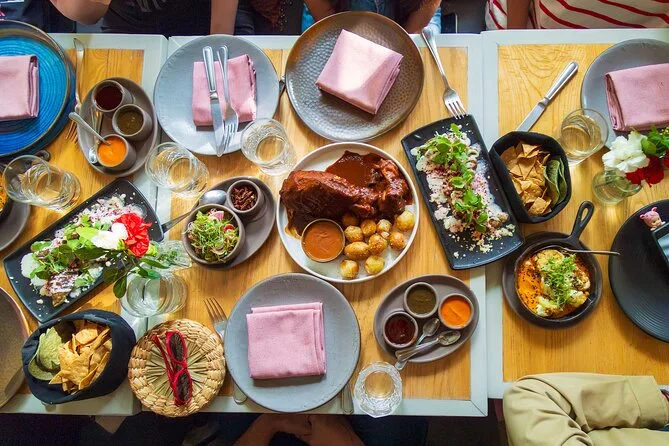 Tu día incluye más de diez degustaciones cuidadosamente seleccionadas — desde dulces tradicionales hasta carnes y mariscos cocinados a fuego lento — además de bebidas (incluidas alcohólicas), todo guiado por un local durante una caminata de 3.5 horas por Roma Norte; hay menús vegetarianos y sin gluten si lo pides al reservar.