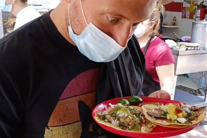 La comida fue una parada rápida en un puesto callejero — tacos al pastor con piña y ese aroma ahumado que se siente en el aire. Intenté pedir en español; Mariana se rió y me ayudó (seguro que mi acento alegró el día a alguien). Terminamos mirando hacia la Torre Latinoamericana mientras ella nos contaba cuánto había cambiado todo desde que era niña. Este tour privado se sintió más como pasear con una amiga que conoce cada atajo. Todavía recuerdo esos rincones tranquilos detrás de grandes puertas que pasarías de largo si no supieras que están ahí.