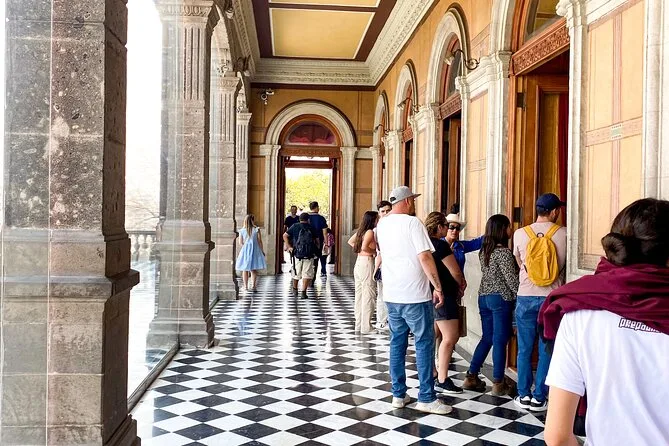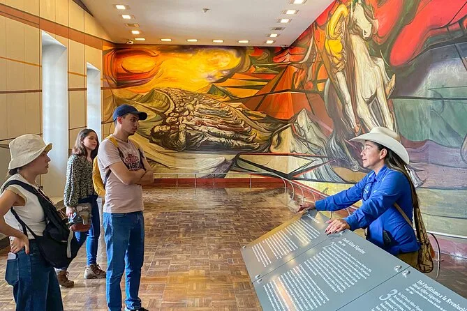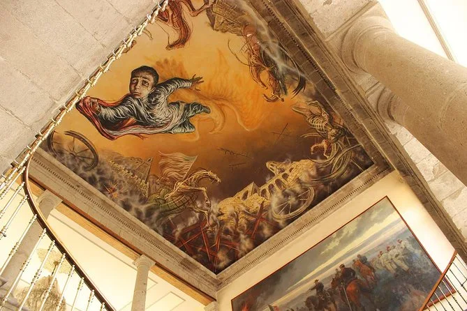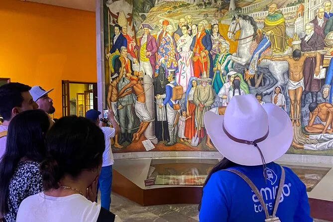 Me detenía en cualquier rincón solo para mirar la ciudad—la vista desde arriba es impresionante, un cielo azul brumoso y un mar infinito de techos. En una sala había un aroma tenue a papel viejo y cera; toqué una barandilla que seguro han agarrado presidentes y revolucionarios (o quizás solo turistas cansados). Vimos murales que cubrían paredes enteras—batallas, héroes, desamores—y Sofía se detenía para que pudiéramos absorber cada detalle sin prisa. Nos habló de la espada de José María Morelos en exhibición, que me puso la piel de gallina. No todo quedó grabado a la perfección, pero aún recuerdo ese momento tranquilo mirando la ciudad, sintiéndome pequeño pero conectado de alguna manera.