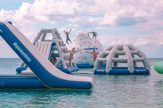 Intenté pedir en español—“¿una hamburguesa con queso azul?”—y Javier asintió, pero sonrió como si supiera que estaba nervioso. La hamburguesa llegó caliente, con ese queso azul intenso que se derretía por todos lados. Mi amiga pidió los famosos tacos (de camarón, dijo, no de res) y compartimos bocados mientras veíamos a los niños probar el paddle board más allá del parque acuático flotante. Puedes agregar actividades como snorkel o masajes, pero honestamente, nosotros solo charlamos y dejamos que la tarde pasara. En un momento, una brisa levantó mi servilleta y la tiró a la arena; Javier solo se rió y me trajo otra sin hacer ningún drama.