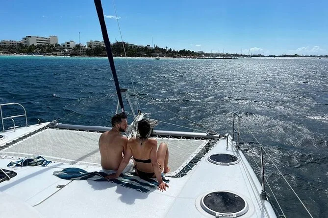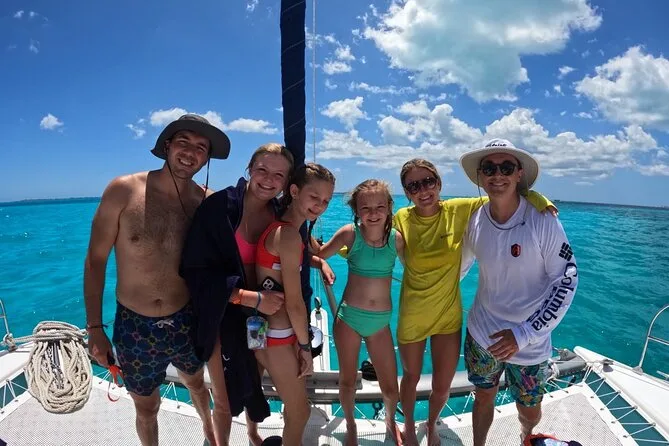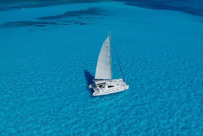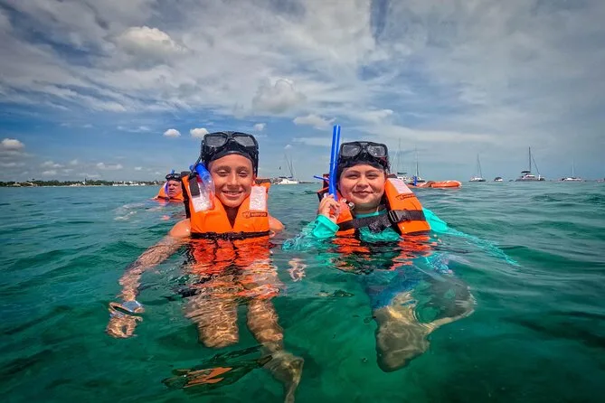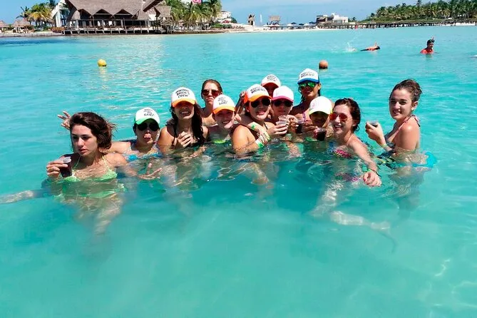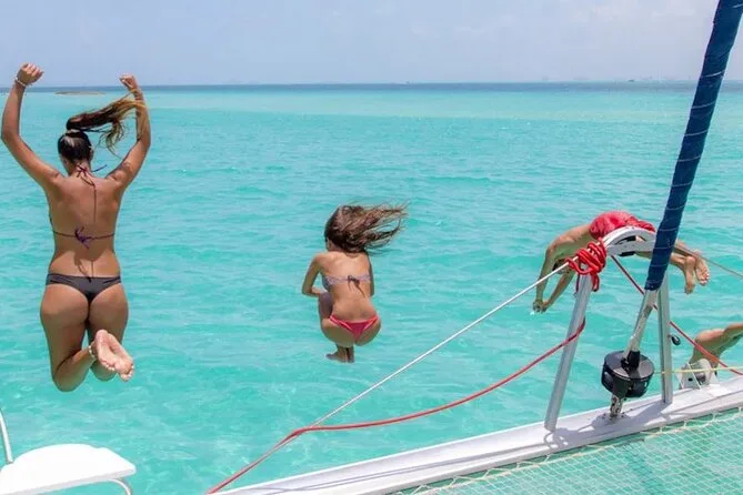 La actividad dura todo el día, incluyendo el tiempo de navegación, la sesión de snorkel, tiempo libre en Isla Mujeres y el almuerzo en el beach club antes de regresar a Cancún.