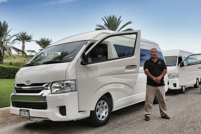 Tu traslado incluye recogida en el aeropuerto de Los Cabos con un chofer local amable que llevará un cartel con tu nombre, transporte privado en un vehículo asegurado con agua fría (cerveza opcional), todas las tarifas y impuestos incluidos, además de la recogida de regreso en tu hotel o villa antes de la salida.