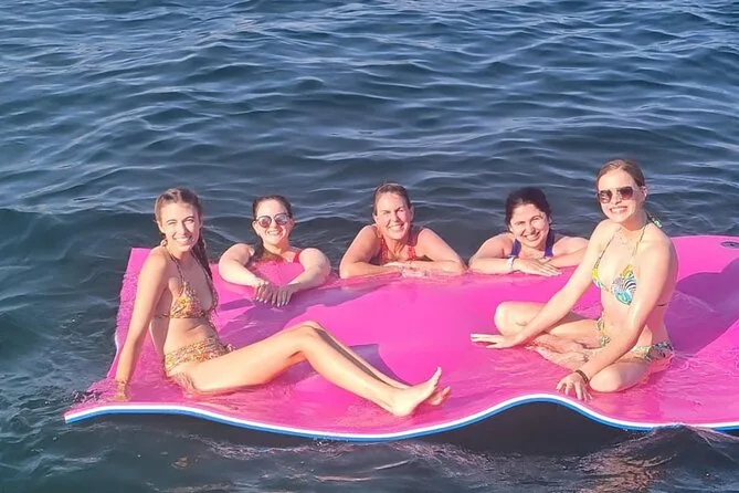 Reducimos la velocidad cerca de las formaciones rocosas—El Arco se veía aún más impresionante de cerca, como una obra de la naturaleza a medio terminar. Los pelícanos ni nos pelaban. Después de sacar un montón de fotos (y un selfie fallido donde solo salió mi frente), nos dirigimos a la Bahía Chileno. El viaje no fue largo—unos 30 minutos quizá—pero fue tiempo suficiente para picar guacamole con totopos y tratar de no mancharme con salsa cada vez que la ola movía el barco. La tripulación sacó tablas de paddle y una enorme colchoneta flotante que llamaban “lirio”; algunos preferimos hacer snorkel. El agua estaba más fría de lo que esperaba pero llena de peces de colores que se movían rápido—una sensación casi mágica bajo el agua.
