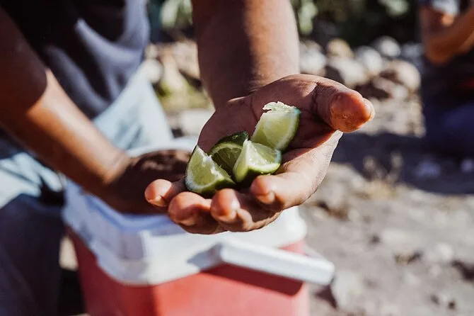 Tu día comienza temprano con transporte en van desde Oaxaca a San Isidro Roaguía, donde te espera un desayuno con chocolate caliente o café y pan fresco, antes de explorar las piscinas minerales y cascadas petrificadas de Hierve el Agua con guía certificado. El tour incluye entradas, snacks orgánicos para la caminata, agua embotellada durante el descenso por el valle, cata de mezcal en el palenque familiar de Don Jerónimo, seguro en las actividades y termina con una comida tradicional oaxaqueña antes de regresar por la tarde.