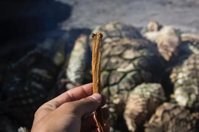 La caminata bajando al valle es de unos 5 km — no es muy difícil, pero sí lo suficiente para que mis zapatos sigan llenos de polvo. Paramos bajo un árbol donde Marisol señaló unas hierbas silvestres cerca del camino; cortó una y dijo que su abuela la usa para hacer té. Después de lo que pareció una eternidad (aunque quizá no tanto), llegamos al palenque de mezcal de Don Jerónimo. Nos mostró cómo su familia hace mezcal — un aroma dulce y ahumado en el aire — y nos dejó probar directo de unos jarros de vidrio. Intenté decir “salud” bien; Don Jerónimo solo sonrió y sirvió otra ronda.
