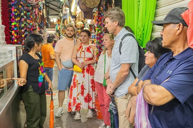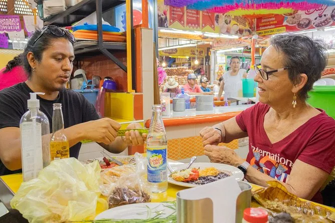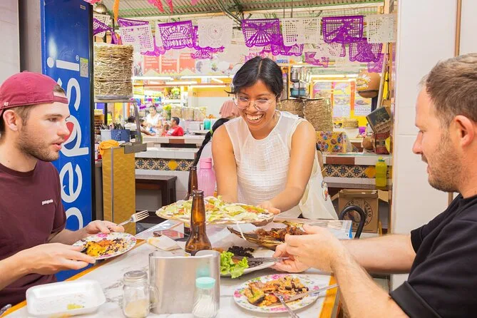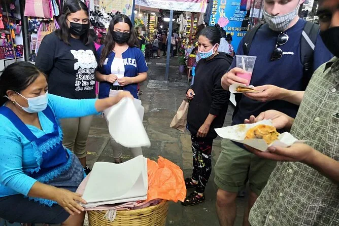 Tu día incluye degustaciones guiadas en el Mercado Benito Juárez y el Mercado 20 de Noviembre con un guía local que te llevará por cada parada de sabores; además, la comida está incluida para que disfrutes sin preocuparte por nada más.