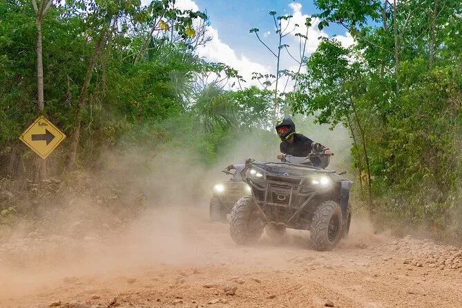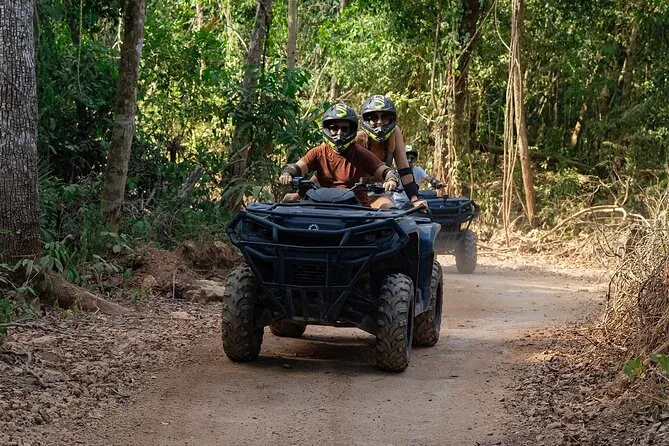 Tu día incluye transporte ida y vuelta desde la mayoría de hoteles en Cancún o Puerto Morelos, todo el equipo de seguridad como casco y protecciones para el paseo en ATV por la selva, agua y snacks ligeros después de nadar en el cenote, además de la guía de expertos locales antes de regresar cómodamente a tu hotel.