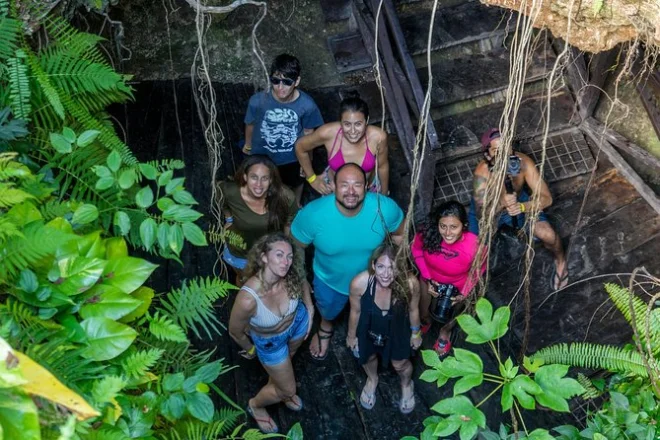 Este tour incluye la visita a tres cenotes: dos al aire libre y uno cavernoso en la Ruta de Los Cenotes cerca de Puerto Morelos.