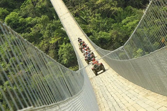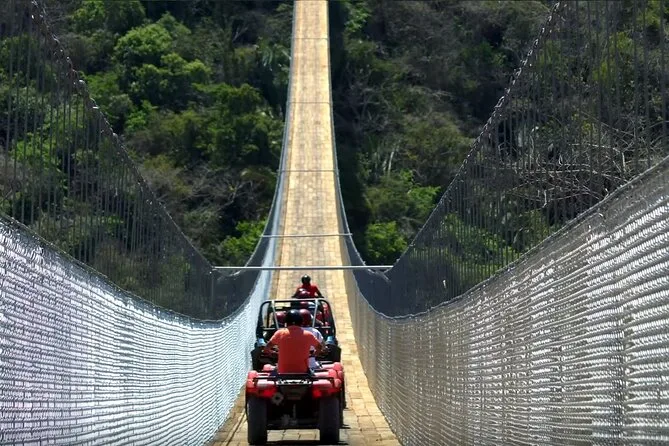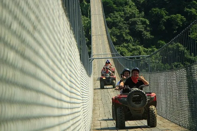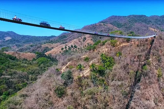 Recorre en ATV o RZR el campo verde de Puerto Vallarta hacia la Sierra Madre, refréscate en la cascada El Salto y cruza el puente colgante más largo de Latinoamérica, el Puente Jorullo, con el corazón latiendo a mil. Termina con una bebida fría con vistas a la selva y prueba tequila local antes de regresar.