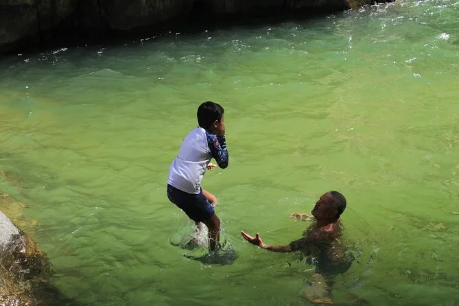 Después de almorzar — y comer mucho más de la cuenta — Martín reunió a algunos para la caminata a las cascadas de Quimixto. No fue difícil, pero el calor y la humedad hicieron que mi camiseta se pegara a la espalda cuando llegamos. El agua estaba helada (pero en el buen sentido) y mucho más ruidosa de lo que imaginaba; todos nos turnamos para lanzarnos mientras unos locales nos miraban y se reían de nuestra torpeza. Si prefieres, puedes llegar en cuatrimoto o a caballo (solo efectivo), pero la caminata se sentía perfecta después de tantas tortillas.