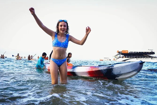 Tu día incluye snacks para el desayuno a bordo mientras navegas en catamarán desde Puerto Vallarta hasta Playa Chica Locca, con todas las tarifas de entrada cubiertas. Al llegar, tendrás acceso ilimitado a una barra libre premium (cócteles, vino, cerveza), guacamole fresco con totopos de maíz azul como snack de bienvenida y uso de kayaks, paddleboards y equipo de snorkel todo el día. El almuerzo ofrece fajitas a la parrilla (pollo o res), arroz, frijoles y tortillas — también opciones veganas y vegetarianas — y siempre hay camastros con sombra o una piscina infinita para relajarte antes del regreso al atardecer.