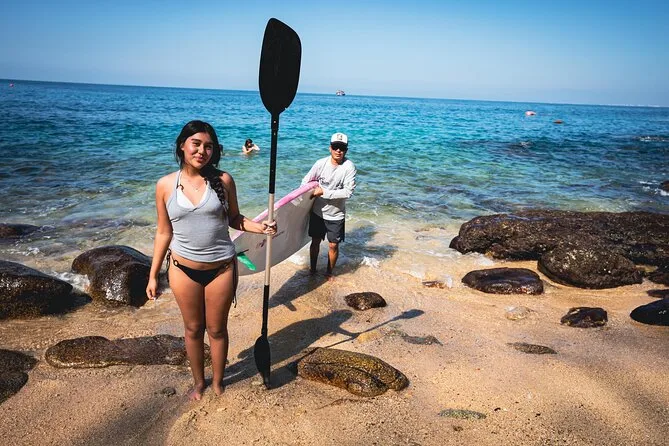 Bajas del catamarán en Playa Chica Locca como si hubieras llegado a una fiesta en una isla privada — guacamole fresco en mano y dedos hundidos en arena tibia. Puedes hacer paddleboard o kayak en aguas tranquilas, luego unirte a la caminata guiada a las cascadas de Quimixto antes de relajarte en la piscina infinita con barra libre cerca. Un día relajado, lleno de risas, que te deja con ganas de una hora más en esa playa escondida.