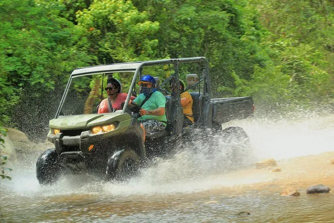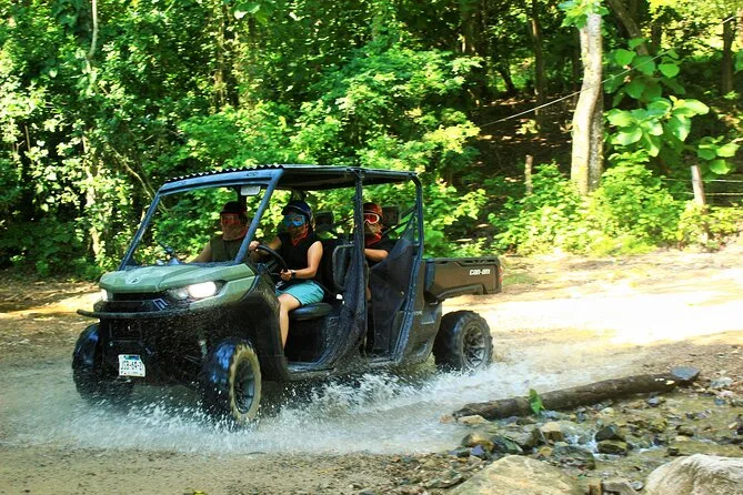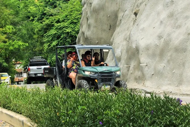 Tu día incluye unos 38 km de recorrido por la costa y montañas de Puerto Vallarta en un dune buggy manual o RZR/Yamaha Viking automático (según tu elección), todo el equipo de seguridad provisto por guías amables que hablan inglés, además de una parada en Edén para una cata de tequila antes de regresar al pueblo.