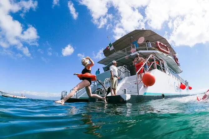 Tu día incluye navegación desde Puerto Vallarta con un guía profesional que ofrece comentarios en vivo mientras recorres la Bahía de Banderas hacia Los Arcos; uso de todo el equipo de snorkel y acceso a kayaks o paddleboards si quieres; snacks frescos como ceviche y paninis; bebidas frías de barra internacional; y tiempo para relajarte antes de regresar juntos a la costa.