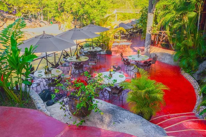 No pensé que querría nadar después de comer, pero el río se veía irresistible—agua fría, piedras lisas bajo los pies, algunos niños locales deslizándose por toboganes de piedra. Puedes remar en kayak o simplemente flotar si eres tan flojo como yo. Cerca de los árboles hay un santuario de animales; loros charlando mientras uno de los cuidadores nos contaba sobre rescates en pueblos cercanos. Es un caos bonito—todos hablando al mismo tiempo, música de fondo, el sol brillando sobre el pelo mojado.