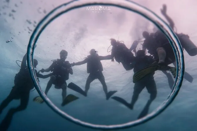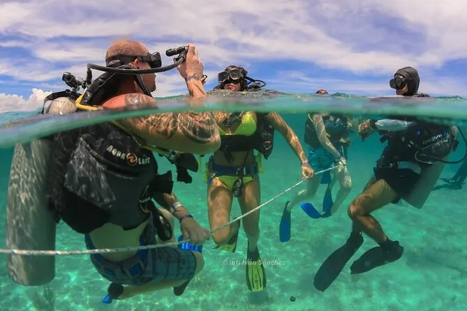 Tu día incluye transporte compartido de ida y vuelta desde el hotel en horarios específicos, todo el equipo de buceo necesario (máscara, chaleco, aletas, regulador), guía bilingüe en español e inglés durante toda la experiencia, seguro durante las actividades, acceso gratuito a las instalaciones del club de playa Maroma después de la práctica en el arrecife poco profundo, y agua embotellada fría al terminar antes de regresar.