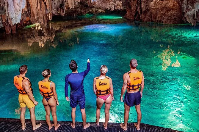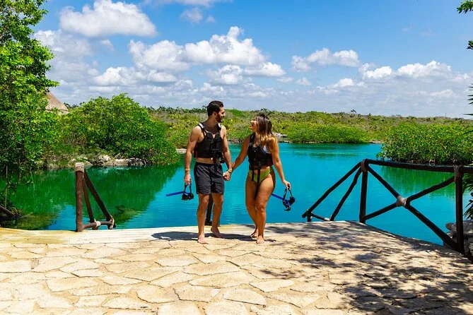 Tu día incluye transporte ida y vuelta desde la mayoría de hoteles en Cancún o Riviera Maya, todo el equipo de snorkel y chaleco salvavidas entregado por el personal amable, además de snacks y agua para que no tengas que preocuparte por llevar nada extra antes de sumergirte en estas aguas milenarias.