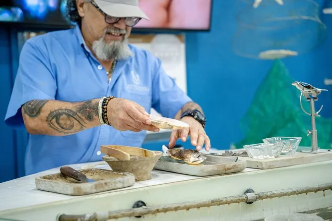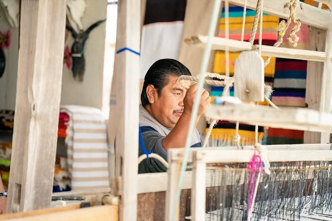 Tu día incluye traslado desde hoteles en Cabo San Lucas, visitas a galerías de arte y sitios históricos como la antigua misión jesuita y el teatro, tiempo en una fábrica de mantas mexicanas con demostraciones de tejido, cata tradicional de tequila, demostración cercana de perlas y comida en Hotel California antes de regresar por la tarde.