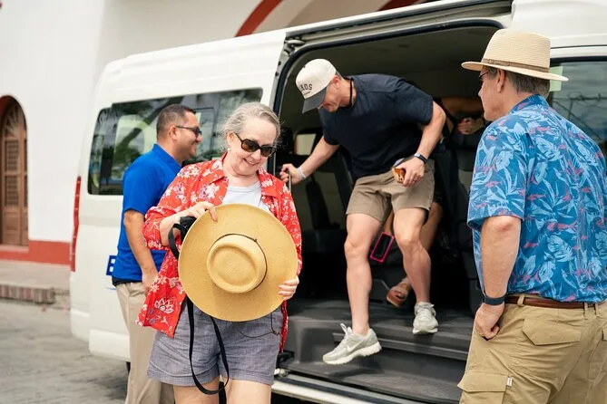 Recorre Todos Santos con un guía local, disfrutando su ritmo tranquilo mientras exploras galerías de arte y lugares históricos como la misión jesuita. Prueba tequila auténtico en una tienda acogedora, observa una demo de perlas y disfruta de la comida en Hotel California, todo con traslado incluido desde Cabo San Lucas.
