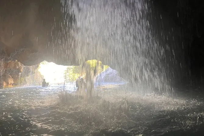 • Recorrido por la zona de grutas: cascada, gruta y río azul
