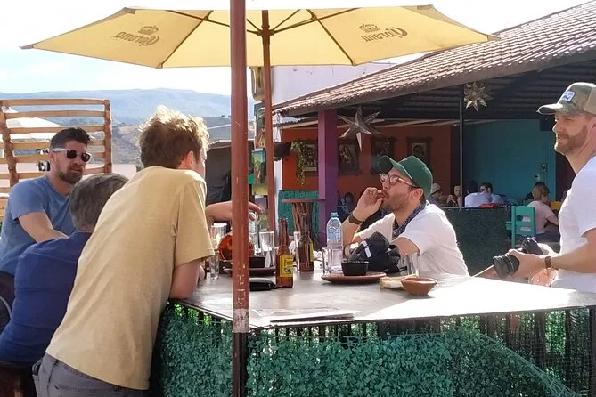 Después, llegamos a un mirador con vista a interminables campos de agave azul verdoso. El silencio solo se rompía por el viento moviendo las hojas puntiagudas y alguien cerca preparando cantaritos (esos cócteles en vasos de barro). Tomamos fotos y probamos una ronda de cócteles de tequila—honestamente, aquí bajo el sol saben totalmente diferente.