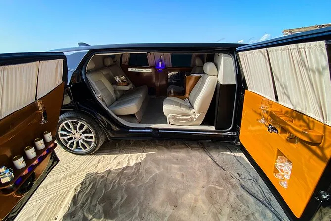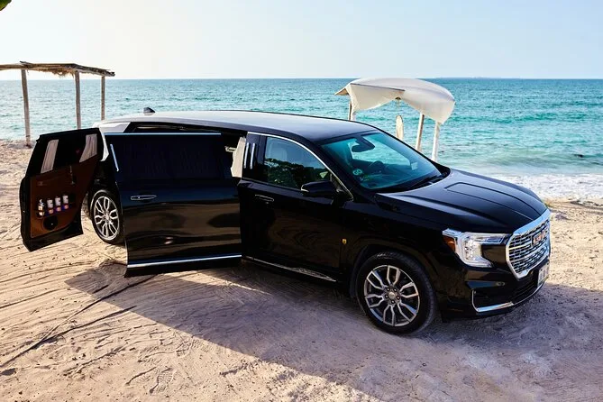 Tu traslado incluye transporte privado en una limusina GMC Denali con aire acondicionado para hasta cinco personas desde el Aeropuerto de Cancún; conductor bilingüe en español e inglés; WiFi a bordo; dos cervezas Corona por pasajero; Hard Seltzers; vino espumoso; agua embotellada para todos; toallitas faciales; entretenimiento en TV; dispositivo Alexa; y café Nespresso recién hecho, todo listo antes de que subas.