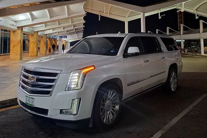 Viajarás en un SUV de lujo como Suburban o Escalade, o un modelo similar.