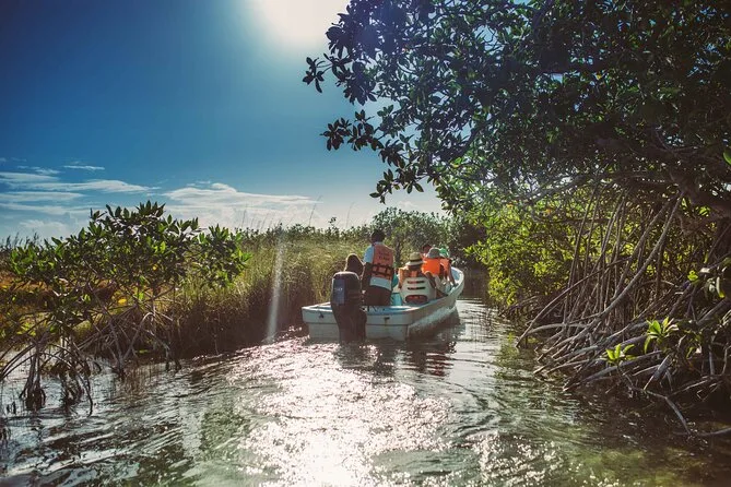 Caminarás por las antiguas murallas mayas sobre las olas turquesas del Caribe en Tulum, probarás tacos frescos con tu grupo, luego navegarás en barco por el silencio verde de Sian Ka’an y flotarás por un canal de aguas claras rodeado de orquídeas y canto de aves. Un día lleno de sorpresas pequeñas — hasta podrías olvidar la hora por un rato.