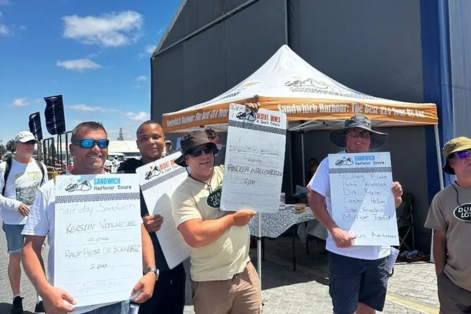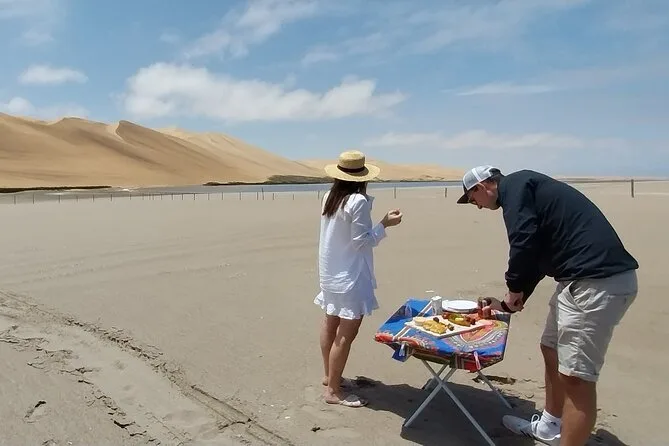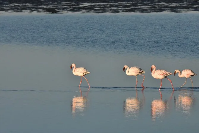 Tu día incluye recogida en hotel de Walvis Bay, todas las entradas a los parques Ramsar Wetlands y Sandwich Harbour, agua embotellada y jugos fríos durante el trayecto, y un almuerzo sencillo antes de regresar por la tarde.