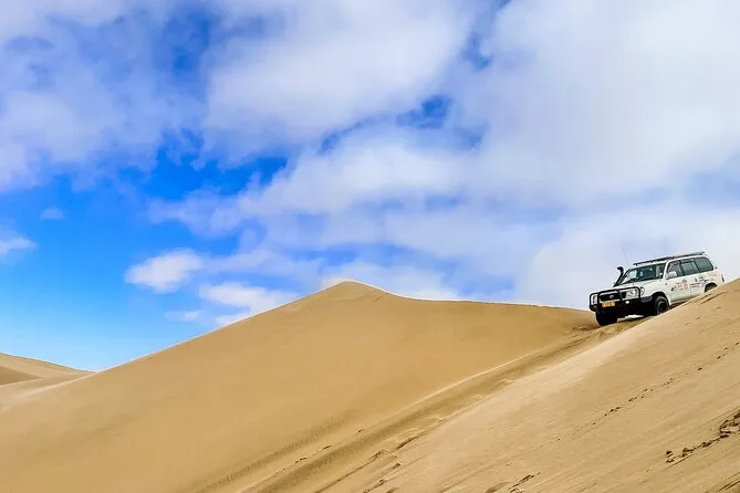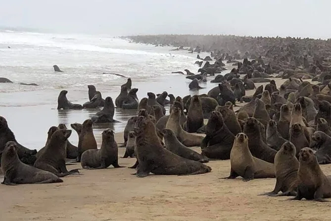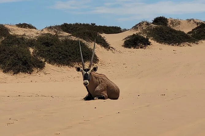 Comienza tu día con recogida en tu hotel de Walvis Bay, observa flamencos y pelícanos en los humedales Ramsar, y luego visita miles de focas ladrando en Pelican Point. Tras un almuerzo sencillo, prepárate para una emocionante aventura por las dunas donde el desierto se encuentra con el Atlántico — una experiencia pura y sorprendente.