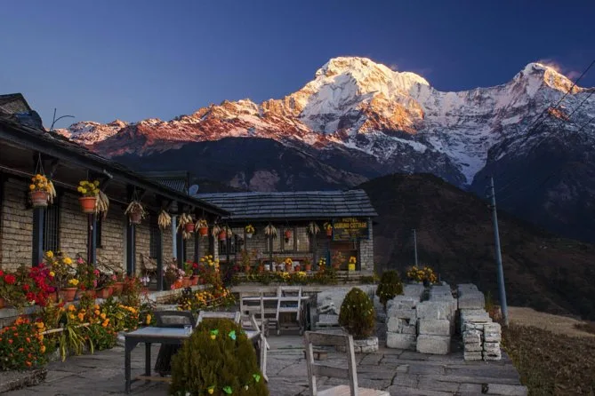 Si quieres vivir de verdad la vida en las montañas de Nepal sin subir pendientes difíciles ni hacer jornadas largas, esta excursión es para ti. Conocerás a los locales en aldeas Gurung como Ghandruk, comerás comida casera y despertarás cada mañana con vistas al amanecer sobre Annapurna. Es un circuito fácil que ofrece paisajes impresionantes—perfecto si solo tienes unos días cerca de Pokhara.