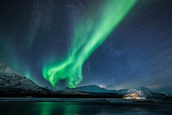 Zarparás desde Tromsø hacia aguas árticas para una noche persiguiendo auroras lejos de las luces de la ciudad, disfrutarás de cena y relatos con guías locales, y despertarás rodeado de ballenas justo fuera de tu ventana. Con todas las comidas incluidas y guía experta, esta es una experiencia única que recordarás mucho tiempo después de volver a casa.