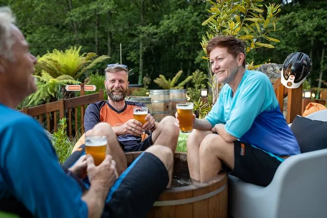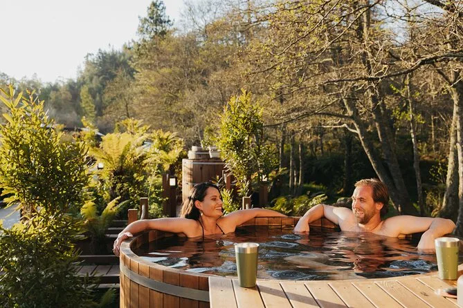 Te sumergirás en tu propia tina privada junto al arroyo del bosque de Rotorua, con bebidas que te llevan directo y tiempo para desconectar tras la aventura o el viaje. Disfruta un baño con agua fresca con amigos o familia, y quédate a tomar café o cerveza artesanal en el café del bosque antes de regresar—pura comodidad rodeada de naturaleza.