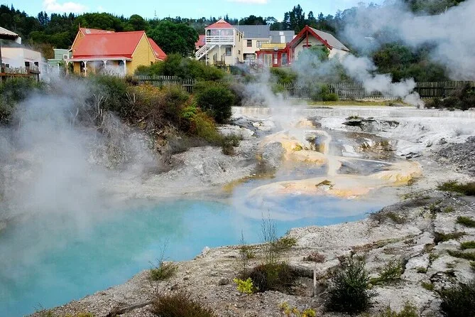 Tu día incluye recogida y regreso desde el puerto de Tauranga en un vehículo con aire acondicionado y un guía local experto que te llevará por Whakarewarewa. Disfrutarás de la entrada a sitios geotérmicos y puntos emblemáticos de Rotorua, además de un almuerzo tradicional estilo hangi antes de volver recorriendo lagos y huertos.