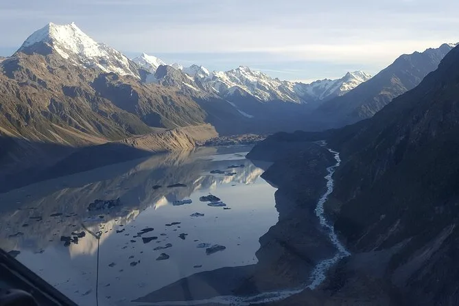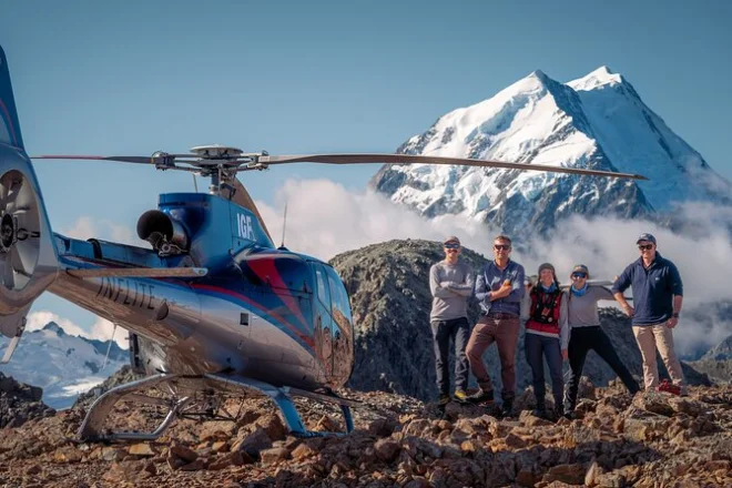 Vuela sobre el Parque Nacional Aoraki Mt Cook, aterriza en un pico alpino real y contempla glaciares y valles desde otra perspectiva. Este vuelo en helicóptero es ideal para quienes buscan aventura sin una caminata larga—y esas vistas se quedan grabadas.