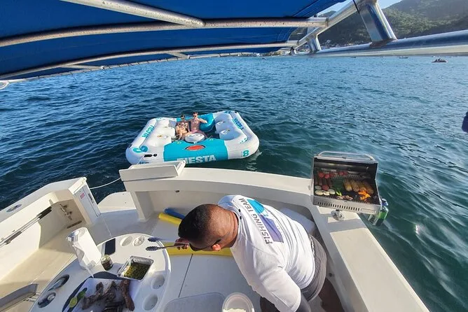 Incluye bebidas como agua embotellada, jugos y Gatorade; el almuerzo puede ser en un restaurante local o una barbacoa opcional a bordo.