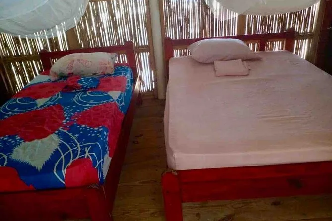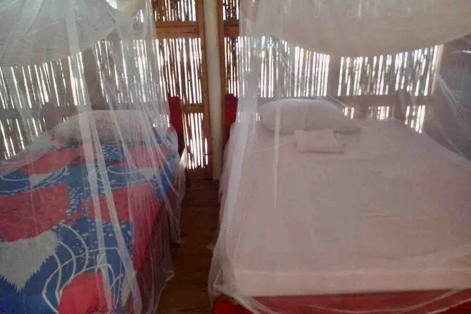 Tu alojamiento es una cabaña privada con baño propio en Isla Aroma; las instalaciones son básicas comparadas con un hotel.