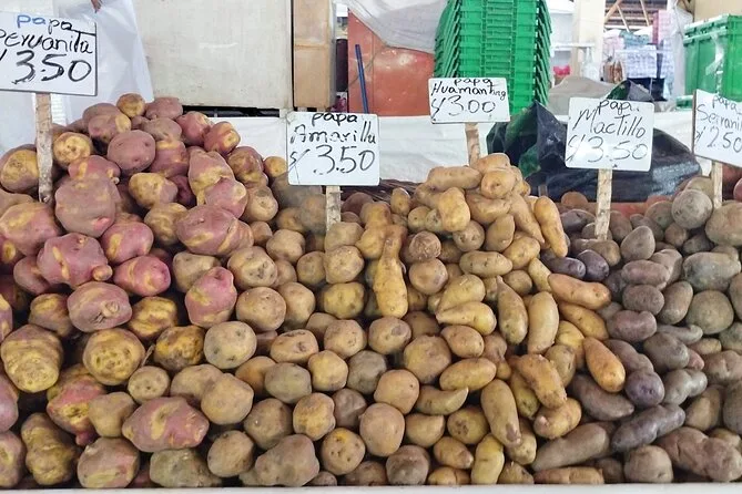 Nos encontramos justo afuera de la puerta número 1 del Mercado San Pedro—fácil de reconocer, incluso si aún estás medio dormido por la altura. Nuestra guía, Lucía, nos saludó con una sonrisa y un mango en la mano, como si hubiera hecho esto mil veces. Dentro, el bullicio era intenso y la luz brillante—vendedores gritando, montones de maíz morado y papas que nunca había visto. Lucía nos cortó una lucuma para probar. Tenía un sabor a caramelo pero con un toque terroso, ¿sabes? Seguro puse cara rara; ella se rió y me dio otra fruta. Aún recuerdo ese sabor de vez en cuando.