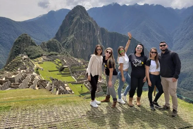 Viajarás en vehículo privado de Cusco a la estación de Ollantaytambo, luego en tren panorámico hasta Aguas Calientes y finalmente en bus hasta Machu Picchu.